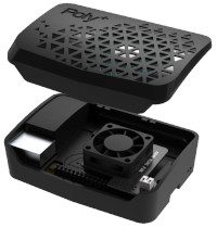 The Argon Poly+ case is a small inexpensive case similar in size to the standard Raspberry Pi cases. The case cover and bottoms are vented and incorporate active cooling with an included heat sink and fan assembly. The plastic case has performed very well in our temperature tests under stress. The Pi connectors are present at the back and side of the unit. The case is roomy enough to accommodate most standard Pi HATs (add-on boards). This is an excellent budget case that offers a good combination of passive and active cooling while at the same time providing simple GPIO access.