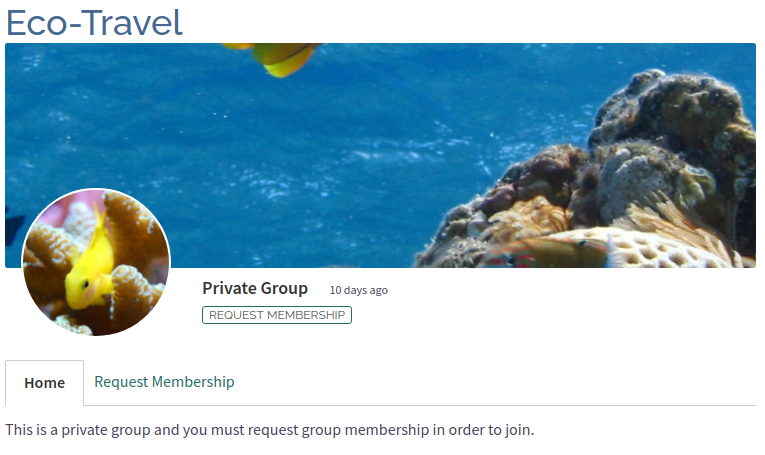 When the group is viewed by a non-member (Spiderman in our case), the following page is shown: