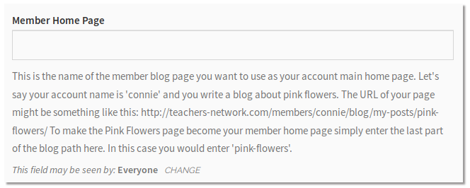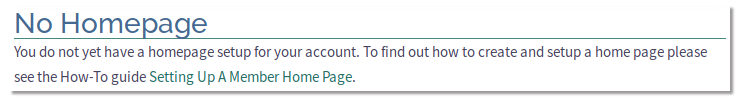 When you first get your Teachers Network account, no profile or personal data exists for your account. When you login, or when you click on the “Home” link in the member block you will be taken to your home page. If nothing has been setup, you will see a block similar to: